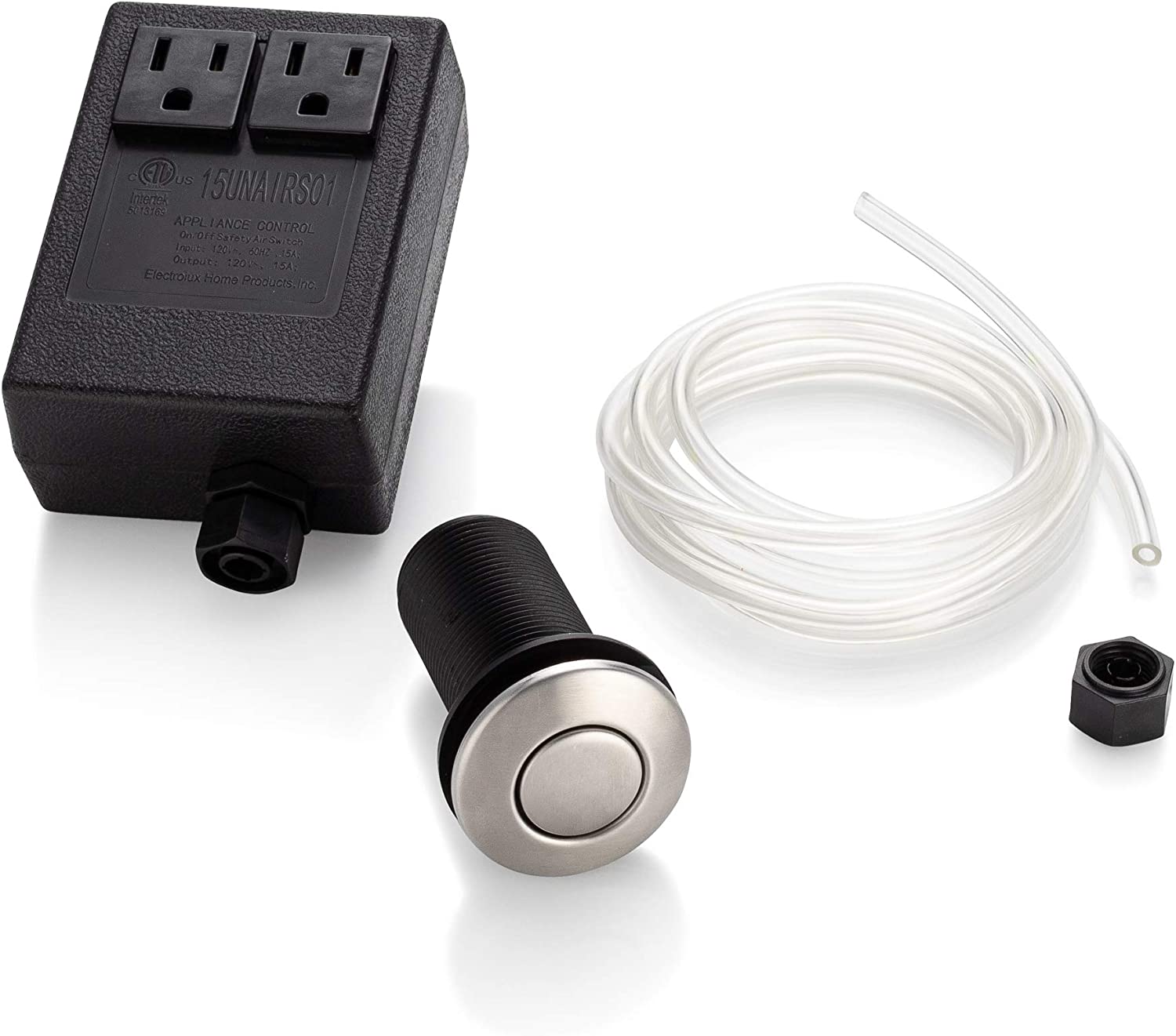 Introducing the Smart Choice 5304522642 Dual Outlet Direct Plug Waste Disposer Air Switch, the ultimate smart home device for your kitchen! Say goodbye to the hassle of reaching for the switch of your food waste disposer, and hello to the convenience of a sink or counter mount air actuated button.